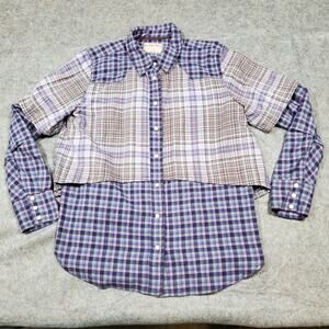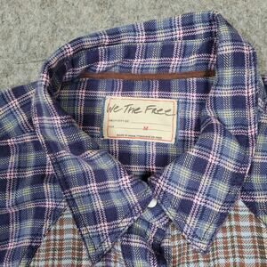 Free People Top Womens Medium Layer It Up Plaid Snap Grunge Flannel Long Sleeve