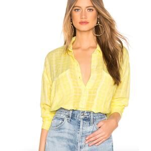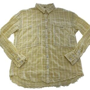 Free People Top Womens Medium Yellow Loveland Button Down Raw Hem Cotton
