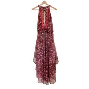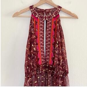 Free People Top Womens Size Small Red Ria Sleeveless Sheer Embroidered Boho Maxi