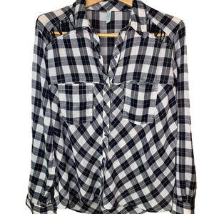 Free People Top Women's Size Small Snap Front Monochrome Plaid Lace Up Shoulder