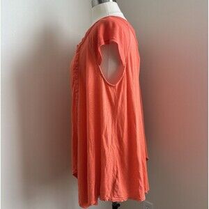 Free People Top Womens Small Orange Linen Top Draped Open Slit Blouse