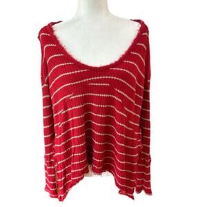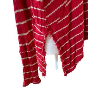 Free People Top Womens Small Red Tan Stripe Oversized Raw Hem Boho Grunge Hippie