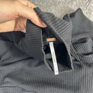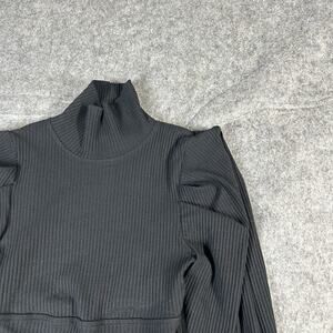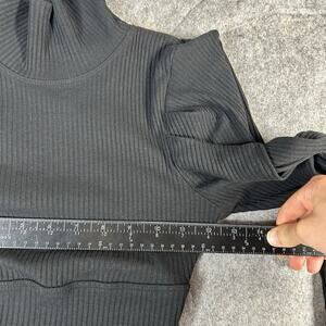 The Free People Top is a stylish black crop top blouse with statement puff sleeves, perfect for women size XS. Made from a blend of polyester, cotton, and spandex, this pullover blouse features a turtleneck neckline and 3/4 sleeves. Ideal for travel, this modern piece is machine washable and easy to care for. With a regular fit and cropped style, this blouse is versatile for all seasons and can be worn year-round.