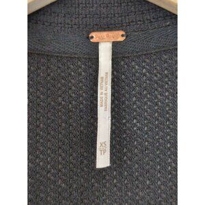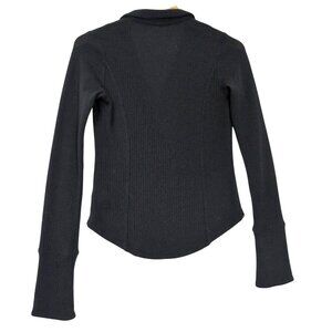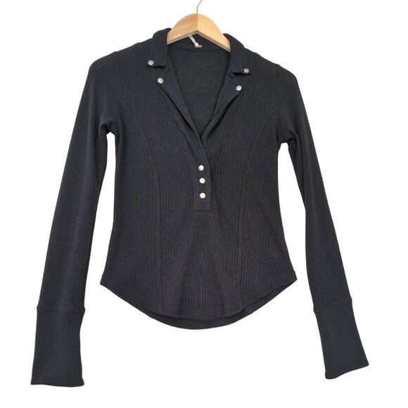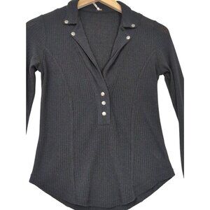 Free People Top Womens XS Black Long Sleeve V-Neck Henley Textured Collar Casual