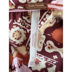 Free People Top Womens XS Satin Warm Tone Floral Print U-Neck Collared Blouse