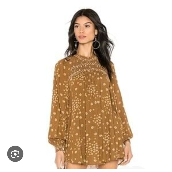 Free People Top XS Brown Flowers In Her Hair Boho Tunic