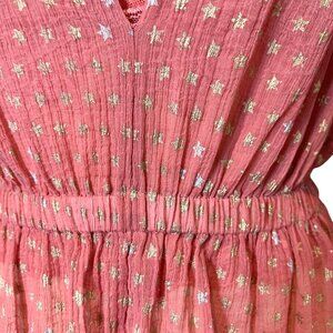 Free People Top XS Mauve Star Print Sleeveless Semi Sheer Blouse Sz Extra Small