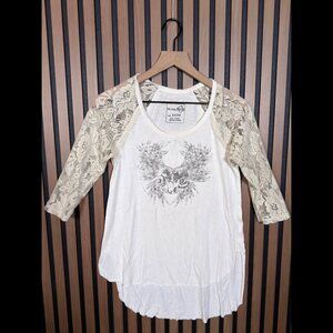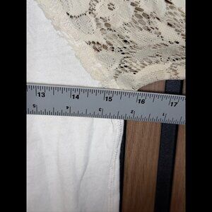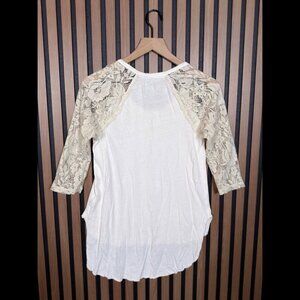 Free People Top XS Womens White Beige Round Neck Lace Long Sleeve Blowfish