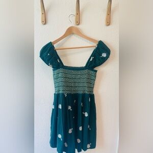 Free People Tory Embroidered Mini Dress in Dark Green Size S