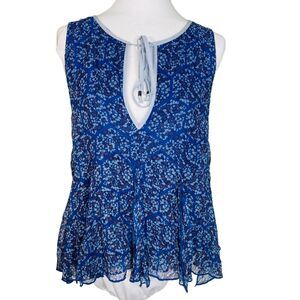 Free People Touch The Sky Printed Blue Tank Top Size XS
