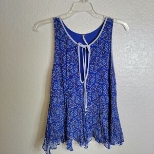 Free People Touch The Sky Printed Blue Tank Top sz Xs