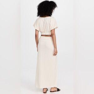Just as effortless as it is essential, this wear-anywhere set features a cropped, flutter sleeve top and coordinating high-rise maxi skirt both designed in a textured, jacquard plaid print for added dimension.
