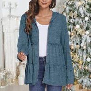 Stay cozy and stylish with this blue hooded sweater. Perfect for layering and adding a touch of warmth to your outfit. In great used condition. No stains, rips, or holes. Please see all photos for details 💥Reasonable offers welcome💥BUNDLE DISCOUNT OF 15% WITH 3 OR MORE ITEMS!! #7- 1