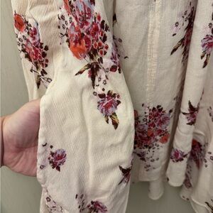 Free People Tree Swing Cream Floral Mini Dress Size S w Purple Flowers Boho