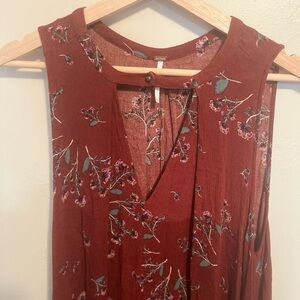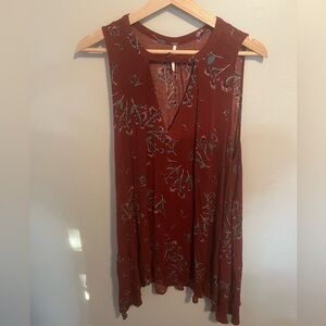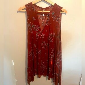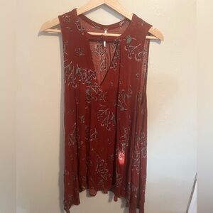 Free People Tree Swing Floral Printed Tunic Dress Sleeveless Dress Crimson Boho