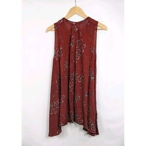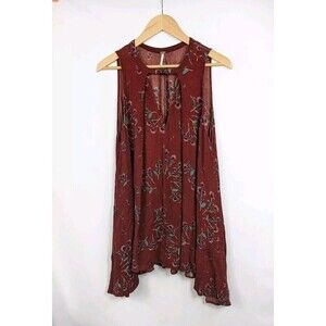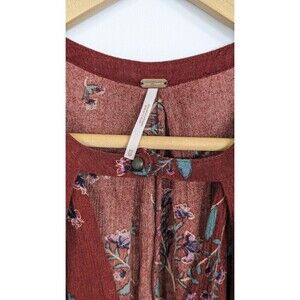 Elevate your bohemian style with this Free People Tree Swing Printed Tunic Dress. It features a V-neckline with button closure, a sleeveless design, and an A-line silhouette. The floral pattern and crimson color give it a boho-chic vibe, perfect for travel, parties, cocktails, or casual outings.