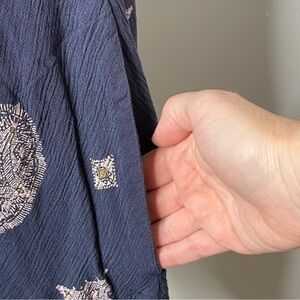 Free People Tree Swing Sleeveless Tunic.Bohemian medallion print tunic with  'V' cut front and single button closure, pockets hidden in sides. Swing style tunic or could be worn as a mini dress. Please see last photo for small snag on back right shoulder. Stock photo included to show fit. New without tags.