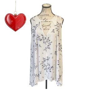 Stylish white Free People top featuring a blue floral pattern. Ideal for everyday wear. Size M. Measurements in photos. Sold out at Nordstrom.