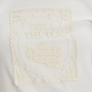 For your next debrief–this cheeky tee from Tricia Fix features a cross-stitched appliqué at the front with a teapot graphic for a playful touch.