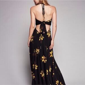 Free People Tropical Escape Maxi Dress M Medium Black Floral Cut Out