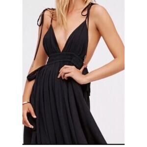 Free People Tropical Heat Maxi Dress Black Layered Small Sleeveless Rare