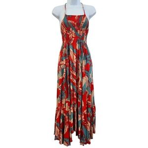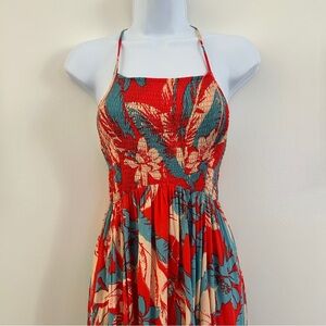 Free People Tropical Red Heatwave Maxi Smocked Sundress Size Small