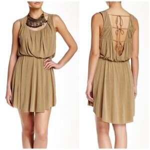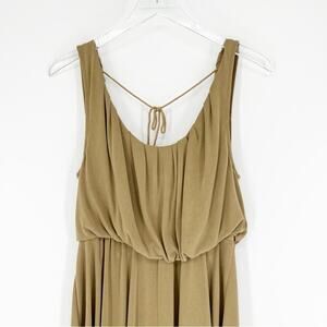 -An easygoing sleeveless dress takes cues from both ancient Greece and today's boho focus with its graceful draping, blouson bodice and tie design at back.