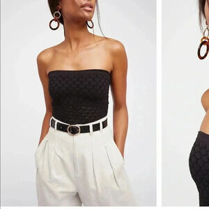 Free People teal tube top. Size M/L. Super soft with built in bra. The design is crochet like so it teared at one point but I was able to sew it back together (see last pic)