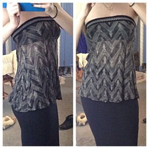 Cute tube top from Free People. Beautiful dark gray design and silver beading at the top (none of the beads are missing!). Has a little key hole opening in the back. The top is elastic n fitted and the bottom is sheer and flowy. Worn only a handful of times. ☺️
