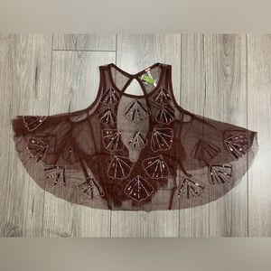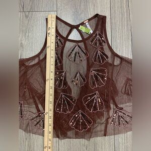 Free People Tulsi Embellished Mesh Tank Brown Size XS NWOT