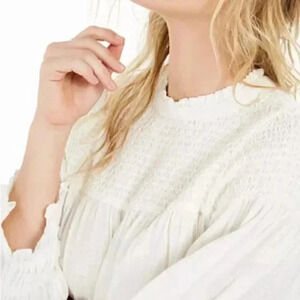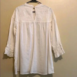 An easy, breezy smocked detailed tunic. Fit: this style fits true to size. - Smocked mock neck - 3/4 sleeves with flared cuffs - Back button closure with keyhole - Smocked bodice - Knit construction - Approx. 30" length - ImportedFiber Content100% cottonCareHand wash. This Tunic is new and has never been worn. It's in excellent condition.