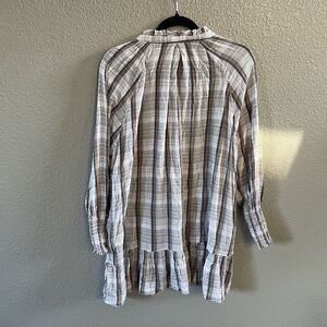 Free People Tunic Dress XS Gray Red Moon Plaid Oversized Boho Cottagecore