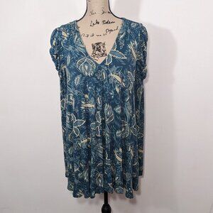 Free People Tunic Dusty Indigo Puff Sleeve Flowy Tunic Top Size M OB1068116