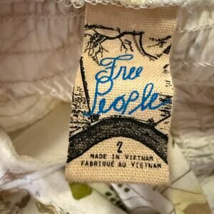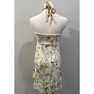 Free People Halter Mini Dress Boho Floral Print Beaded Strap White Green Size 2