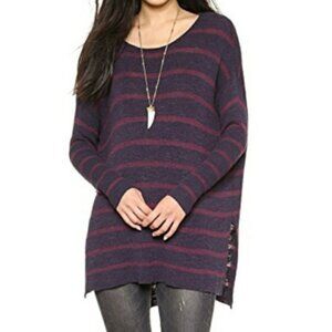 Free People Tunic Sweater XS Oversized Slouchy Long Sleeve Blue Purple Stripe
