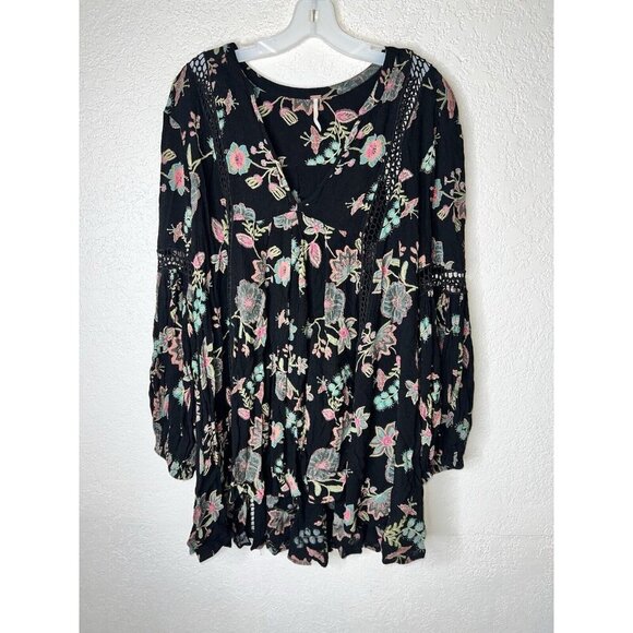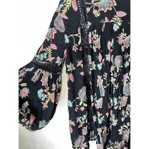 Free People Tunic Top Medium Floral Flowy Dress Boho Vivid Colors Rayon R