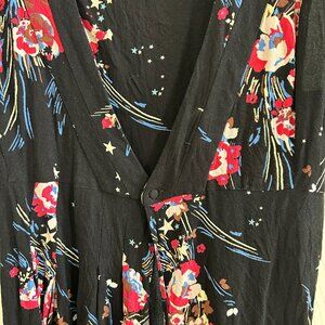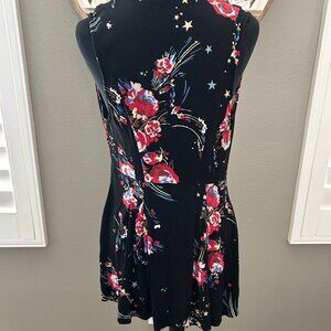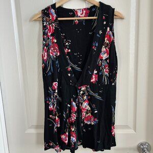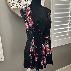 Free People Tunic Top Women's Back To The Basics One Button Black Floral Size S
