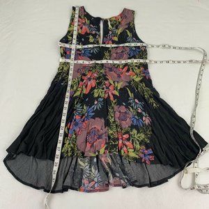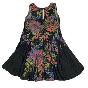Free People Tunic Top Women’s Size XS Black Floral Print Sleeveless Keyhole Back