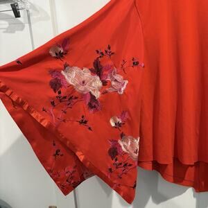 Free People Tunic Women S Red Festival Embroidered Bloom Boho Asian Artsy Flare