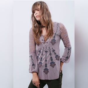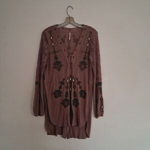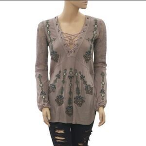 Free People Tunic Women's Small S Charlie Embroidered Lace Embelished Bohemian