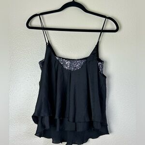 Free People Turn It On Beaded Sparkly Cami Top Black