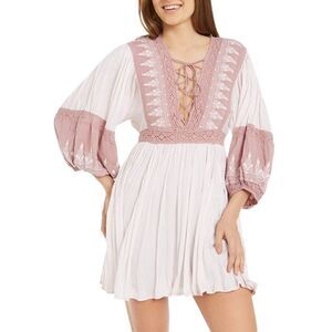 Free People Turn Heads Embroidered Lace-Trim Mini Dress in the Size Large