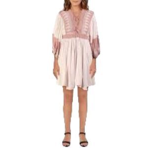 Free People Turn Heads Embroidered Lace-Trim Mini Dress in the Size Large in the Color Mauve Swoon