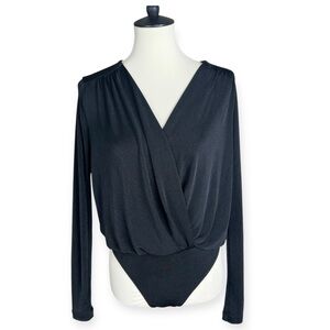 Free People Turnt Draped Bodysuit Plunge Deep V-Neck in Black Sz S