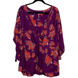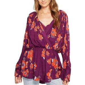 Free People Tuscan Dreams Plum Wrap Floral Blouse woman’s size large