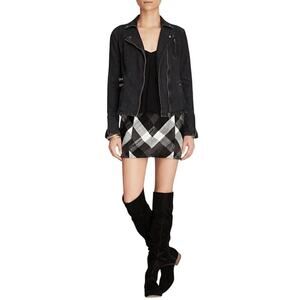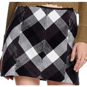 Free People Twiggy Herringbone Coal Black/white Plaid Mini Skirt | Sz 6 NWOT