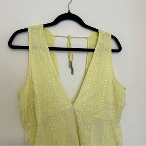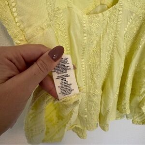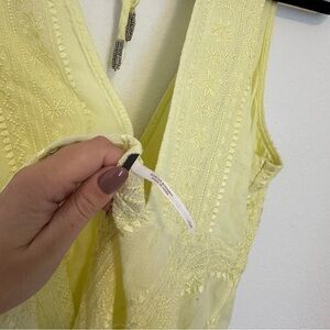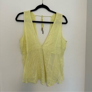 Free People Twist And Shell Embroidered Top Pale Yellow Tie Open Back Size Large