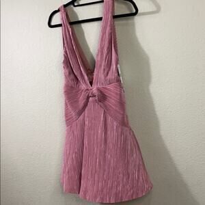 Brand new Free People Twist And Shout Plunging Mini Dress Desert Rose size 2. Plunge V neck. Sleeveless. Side zipper closure. V-back cutout. Textured construction. Lined. 96% Polyester 4%Elastane. Measurement: top of shoulder to hem 34” and armpit to armpit 13”