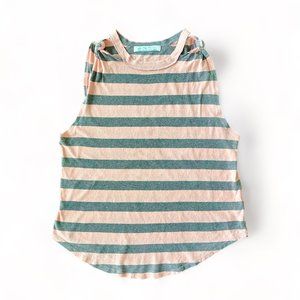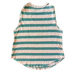 Free People Twist tanks has a twist detail that highlights the bold coral and gray stripe pattern. Crew neckline with a sleeveless design with a curved hemline.