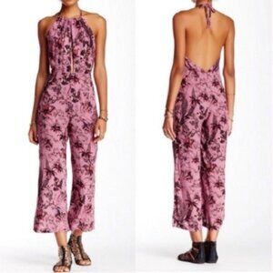 Free People Twisted Halter Floral Print Jumpsuit in Lilac Combo Size 4